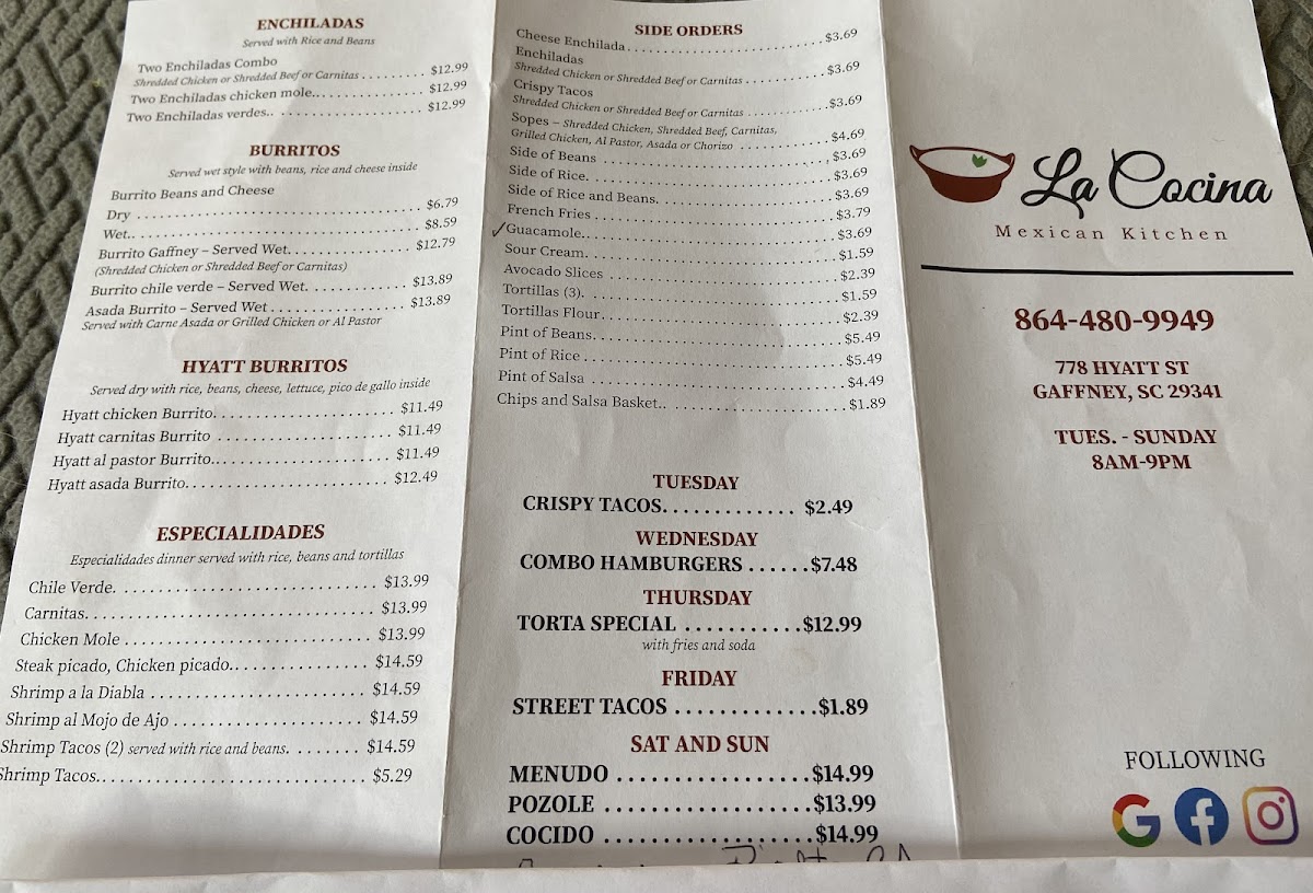 Located at 778 Hyatt St, Gaffney, SC, La Cocina Mexican Kitchen is not your typical Mexican dining experience. Customers rave about its vibrant atmosphere and exceptional cuisine that stands apart from other local spots.